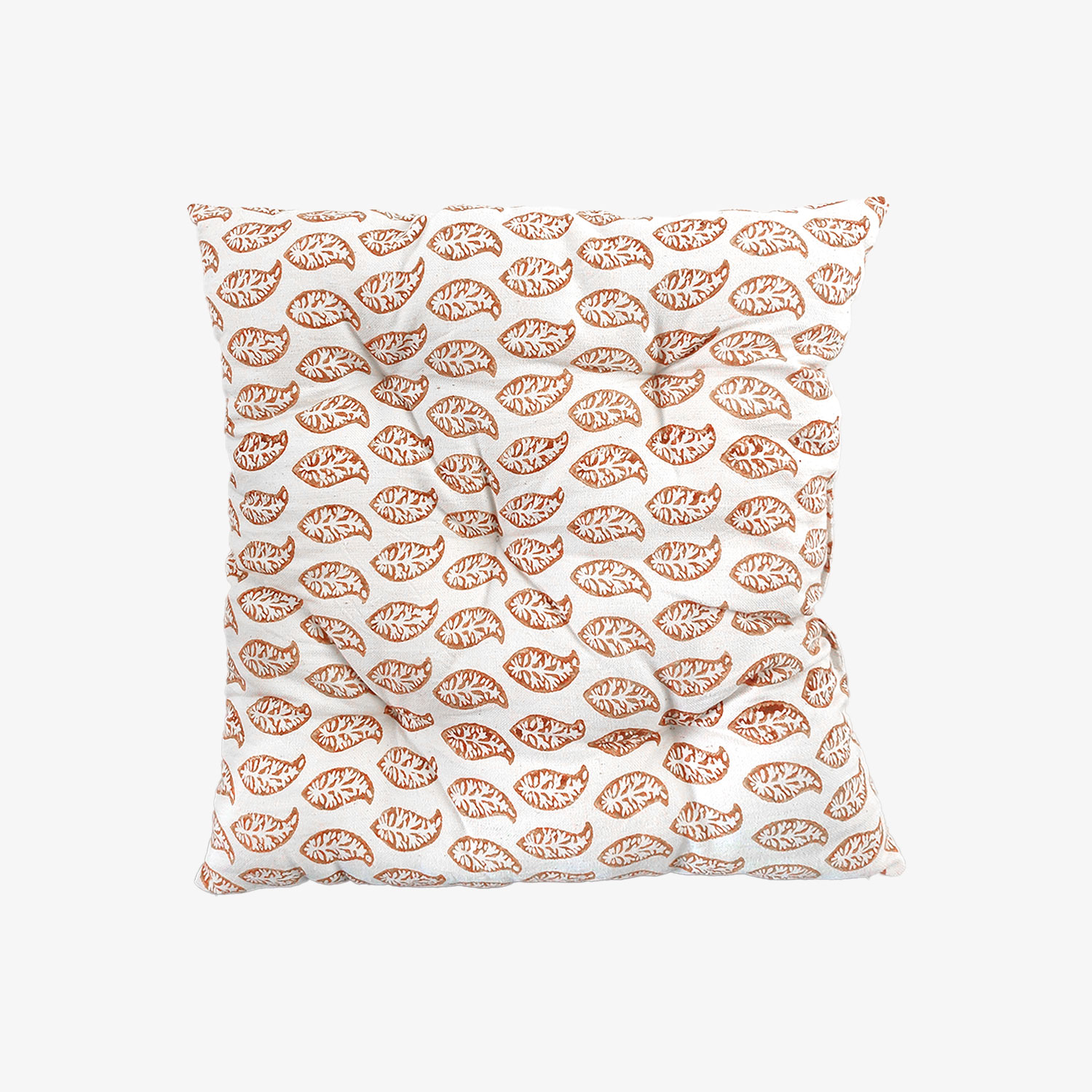 این تشکچه در محله تاریخی شهشهان در قلب اصفهان ساخته شده است.طرحها با قالب های چوبی کنده کاری شده یکی یکی بر روی پارچه ها نقش زده شده، سپس چندین بار شسته و در نهایت رنگها با بخار آب تثبیت شده اند. فرآیندی کاملا دستی، زمانبر و پر از دقت و عشق.